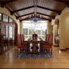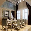 顶棚处理优雅别致,趣味盎然。造型或稳键,或有变,或流畅,或蜿蜒,都以美式的风格理念为依托,趋步向前,如苍穹般的存在,给整个职能空间的观赏和艺术性增添了必要的依据。石膏线勾勒石膏板的处理,配合着区域空间其它或大或小,造型迥异的色块拼接,美观大方。