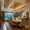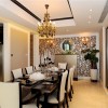 顶棚处理优雅别致,趣味盎然。造型或稳键,或有变,或流畅,或蜿蜒,都以美式的风格理念为依托,趋步向前,如苍穹般的存在,给整个职能空间的观赏和艺术性增添了必要的依据。石膏线勾勒石膏板的处理,配合着区域空间其它或大或小,造型迥异的色块拼接,美观大方。