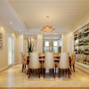 顶棚处理优雅别致,趣味盎然。造型或稳键,或有变,或流畅,或蜿蜒,都以美式的风格理念为依托,趋步向前,如苍穹般的存在,给整个职能空间的观赏和艺术性增添了必要的依据。石膏线勾勒石膏板的处理,配合着区域空间其它或大或小,造型迥异的色块拼接,美观大方。