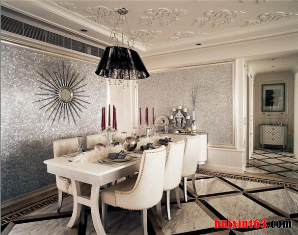 顶棚处理优雅别致,趣味盎然。造型或稳键,或有变,或流畅,或蜿蜒,都以美式的风格理念为依托,趋步向前,如苍穹般的存在,给整个职能空间的观赏和艺术性增添了必要的依据。石膏线勾勒石膏板的处理,配合着区域空间其它或大或小,造型迥异的色块拼接,美观大方。