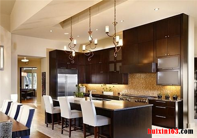 餐厅做为用餐的职能空间,家具配饰方面当然要以实用性主要原则。具体到美式风格的设计理念之下,餐桌椅的配置,造型款式,辅助用餐设施选择,都极尽美式风格的风格特点,餐桌椅等主要餐厅家具配饰及辅助家具对于整个职能空间的空间划分,也有很大的影响作用。从直观效果来看,设计师很好做到了整体和局部的统一调配。