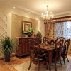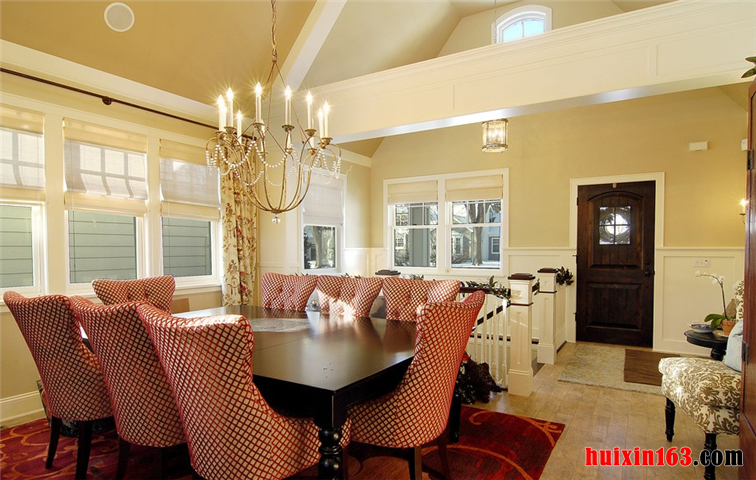 餐厅做为用餐的职能空间,家具配饰方面当然要以实用性主要原则。具体到美式风格的设计理念之下,餐桌椅的配置,造型款式,辅助用餐设施选择,都极尽美式风格的风格特点,餐桌椅等主要餐厅家具配饰及辅助家具对于整个职能空间的空间划分,也有很大的影响作用。从直观效果来看,设计师很好做到了整体和局部的统一调配。