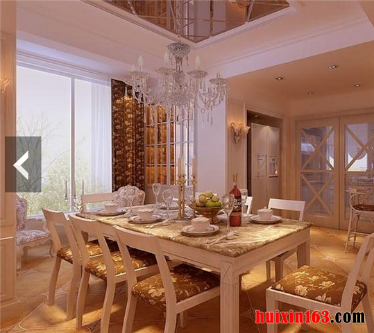 餐厅做为用餐的职能空间,家具配饰方面当然要以实用性主要原则。具体到美式风格的设计理念之下,餐桌椅的配置,造型款式,辅助用餐设施选择,都极尽美式风格的风格特点,餐桌椅等主要餐厅家具配饰及辅助家具对于整个职能空间的空间划分,也有很大的影响作用。从直观效果来看,设计师很好做到了整体和局部的统一调配。