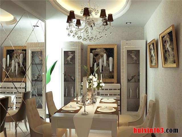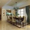 餐厅做为用餐的职能空间,家具配饰方面当然要以实用性主要原则。具体到美式风格的设计理念之下,餐桌椅的配置,造型款式,辅助用餐设施选择,都极尽美式风格的风格特点,餐桌椅等主要餐厅家具配饰及辅助家具对于整个职能空间的空间划分,也有很大的影响作用。从直观效果来看,设计师很好做到了整体和局部的统一调配。