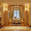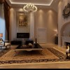 顶棚的处理极具欧式系列家装的特点,大型的吊灯灯池,配合精彩的的欧式吊灯,加上欧式造型明显的家具配饰,将整个客厅的情绪表达的淋漓尽致。地板的处理妥当稳重,墙壁处理十分具有欧式风范儿,整体设计连惯稳妥,精彩无限。