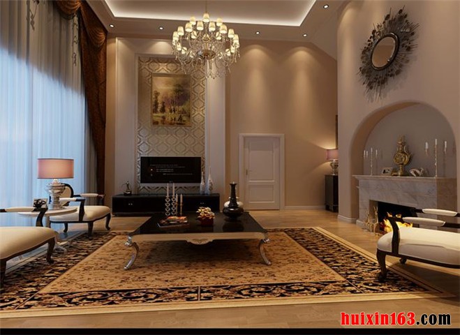 顶棚的处理极具欧式系列家装的特点,大型的吊灯灯池,配合精彩的的欧式吊灯,加上欧式造型明显的家具配饰,将整个客厅的情绪表达的淋漓尽致。地板的处理妥当稳重,墙壁处理十分具有欧式风范儿,整体设计连惯稳妥,精彩无限。