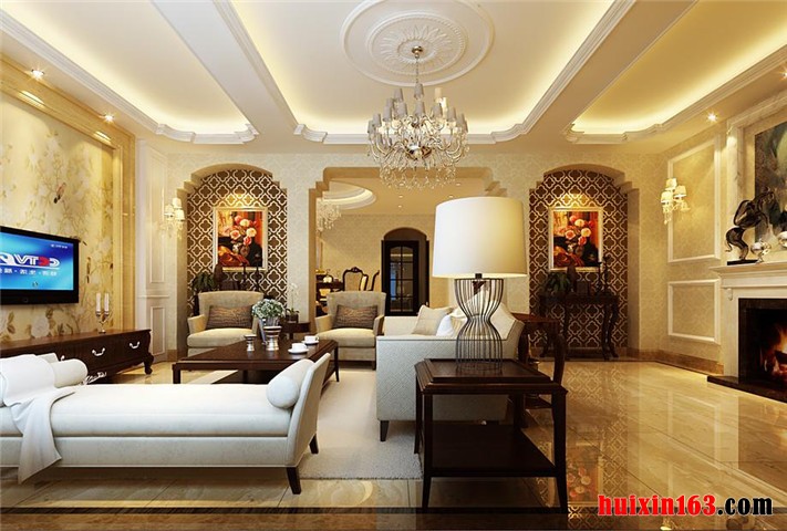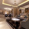 顶棚的处理极具欧式系列家装的特点,大型的吊灯灯池,配合精彩的的欧式吊灯,加上欧式造型明显的家具配饰,将整个客厅的情绪表达的淋漓尽致。地板的处理妥当稳重,墙壁处理十分具有欧式风范儿,整体设计连惯稳妥,精彩无限。