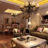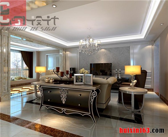 顶棚的处理极具欧式系列家装的特点,大型的吊灯灯池,配合精彩的的欧式吊灯,加上欧式造型明显的家具配饰,将整个客厅的情绪表达的淋漓尽致。地板的处理妥当稳重,墙壁处理十分具有欧式风范儿,整体设计连惯稳妥,精彩无限。