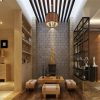 餐厅的功能性在得以体现的同时,设计师根据日式风格系更家装的特点,遵循日式家装设计理念,依托空间和户型的优势,利用色彩的平衡协调处理,将科学严谨的空间布局,协同明亮开阔的层次划分,辅以日式系家具配饰的妆点,努力营造一个具有日式氛围情调的就餐环境,达到了良好的效果。