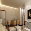餐厅的功能性在得以体现的同时,设计师根据日式风格系更家装的特点,遵循日式家装设计理念,依托空间和户型的优势,利用色彩的平衡协调处理,将科学严谨的空间布局,协同明亮开阔的层次划分,辅以日式系家具配饰的妆点,努力营造一个具有日式氛围情调的就餐环境,达到了良好的效果。