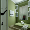 餐厅的功能性在得以体现的同时,设计师根据日式风格系更家装的特点,遵循日式家装设计理念,依托空间和户型的优势,利用色彩的平衡协调处理,将科学严谨的空间布局,协同明亮开阔的层次划分,辅以日式系家具配饰的妆点,努力营造一个具有日式氛围情调的就餐环境,达到了良好的效果。