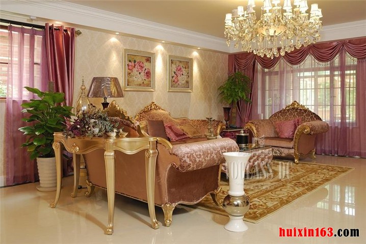 设计师根据业主的要求,依托空间和户型的优势,努力协调客厅在整体房屋装修效果中所占的份量因素,以精致的线条勾勒,合理的空间布局,巧妙的家具配饰协调,将此客厅处理美观大方,高雅别致,而且,处处透露着欧式皇家风范的特征,让人有种如临皇室的感觉。