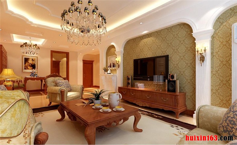设计师根据业主的要求,依托空间和户型的优势,努力协调客厅在整体房屋装修效果中所占的份量因素,以精致的线条勾勒,合理的空间布局,巧妙的家具配饰协调,将此客厅处理美观大方,高雅别致,而且,处处透露着欧式皇家风范的特征,让人有种如临皇室的感觉。