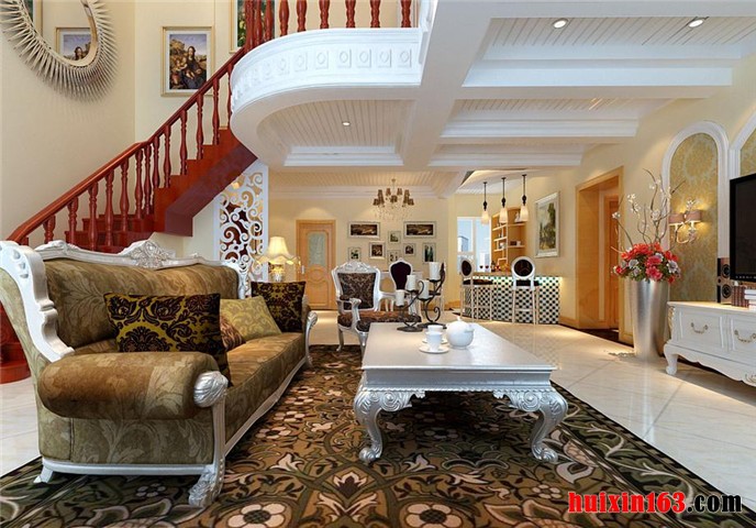 设计师根据业主的要求,依托空间和户型的优势,努力协调客厅在整体房屋装修效果中所占的份量因素,以精致的线条勾勒,合理的空间布局,巧妙的家具配饰协调,将此客厅处理美观大方,高雅别致,而且,处处透露着欧式皇家风范的特征,让人有种如临皇室的感觉。