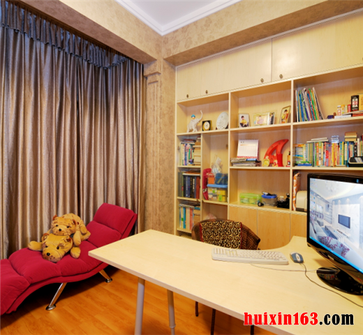 书房的功用自然不用多说,传统意义上的书房与现代意义上的书房不但功能性有着不同之处,而且又根据各个装修风格的特点以及业主的偏好等诸多因素有着更加多的不同。此设计中就加入了业主喜爱的元素,借助设计师的整体协调,使总体看起来和谐自然。