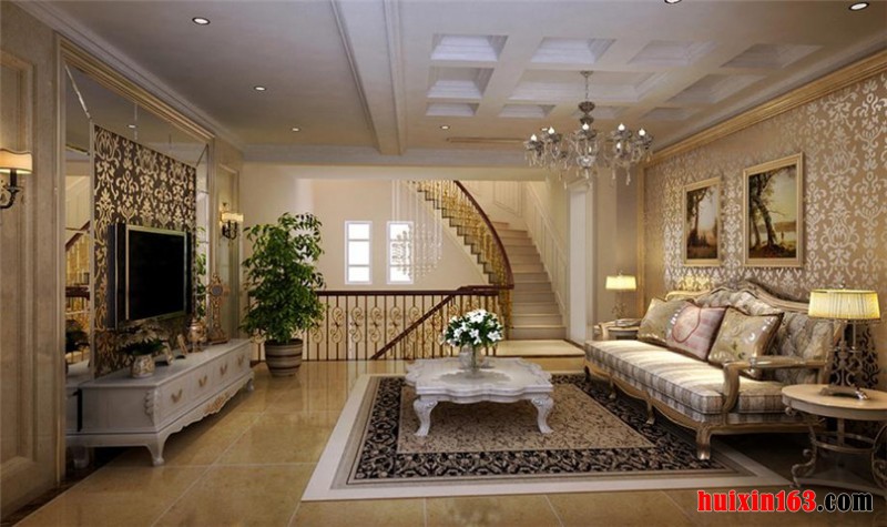 整体色调浓重自然,具有十分突出的欧式客厅的装修效果。设计师遵循欧式系列家装的理念,依托空间和户型的优势,利用色彩的变幻,线条的勾勒,欧式系列家具配饰的精彩搭配,努力营造欧式富丽堂皇的会客空间,起到了很好的效果。