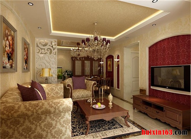 整体色调浓重自然,具有十分突出的欧式客厅的装修效果。设计师遵循欧式系列家装的理念,依托空间和户型的优势,利用色彩的变幻,线条的勾勒,欧式系列家具配饰的精彩搭配,努力营造欧式富丽堂皇的会客空间,起到了很好的效果。