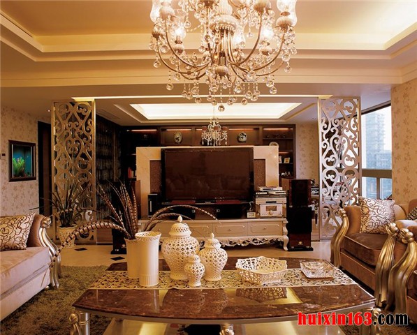 整体色调浓重自然,具有十分突出的欧式客厅的装修效果。设计师遵循欧式系列家装的理念,依托空间和户型的优势,利用色彩的变幻,线条的勾勒,欧式系列家具配饰的精彩搭配,努力营造欧式富丽堂皇的会客空间,起到了很好的效果。