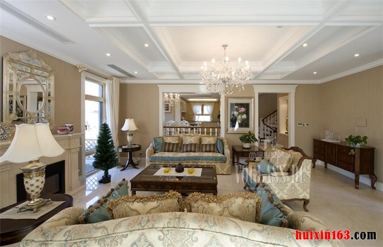 整体色调浓重自然,具有十分突出的欧式客厅的装修效果。设计师遵循欧式系列家装的理念,依托空间和户型的优势,利用色彩的变幻,线条的勾勒,欧式系列家具配饰的精彩搭配,努力营造欧式富丽堂皇的会客空间,起到了很好的效果。