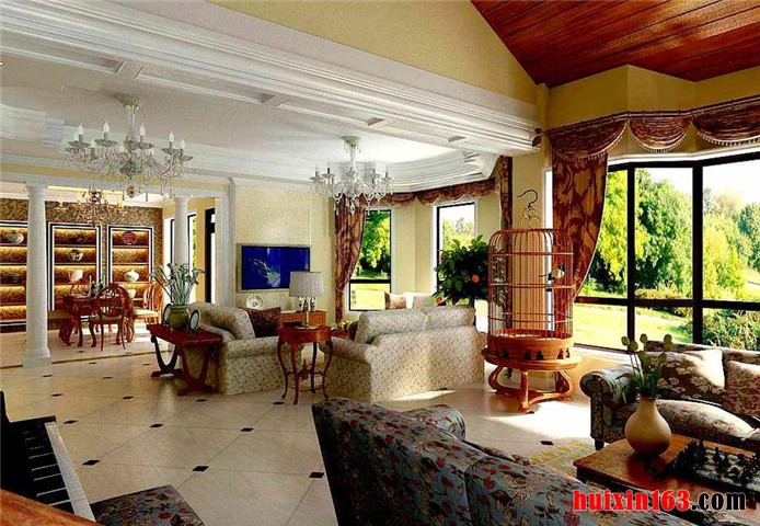 该设计对于喜欢欧式系列家装的人事来说是个不二选择,设计师充分考虑了欧式传统系例家装的特点,运用合理的情绪表达,协调欧式家具配饰的妆点处理,让欧式会客功能对于居家舒适的需求和谐的结合在一起,整体沉稳大气,格调高雅。