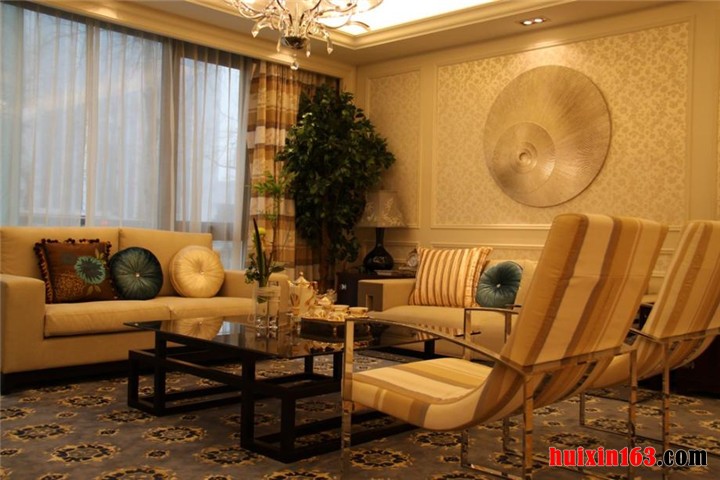 在自然光源的运用方面,此案表现的十分大气,其实,在实际装修当中,人造光源的合理设置固然重要,如果能加上精彩的自然光源来进行辅助处理,会起到神奇的效果。从直观效果来看,整体表现深沉自然,具有浪漫主义气质和温馨舒适生活气息综合协调的情绪,将客厅的功能性和舒适性发挥到极妥当。
