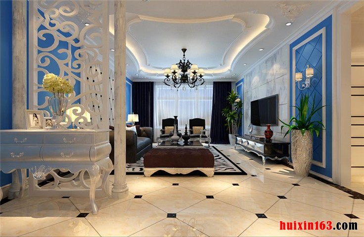 客厅的职能是会客,当然,还有最重的任务就是,承担业主全家休闲娱乐,欧式的客厅装修和其它风格的装修有明显的不同,无论从色彩的运用,线条的勾勒,或是家具的配饰方面,都具有十分欧式的特征,让人身处其中,如临欧洲一般,尽享欧洲风情。