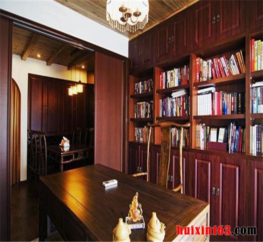 设计师严格遵循此种风格的设计理念,以科学严谨的创作态度,利用合理的空间布局,清晰的空间层次划分,家具配饰的点缀作用,把欧式书房所具有浓重文化氛围,以及优雅大气的外在表现,都通过细节点点滴滴的表达出来,达到了良好的效果。