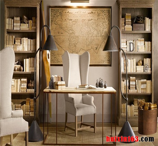 设计师严格遵循此种风格的设计理念,以科学严谨的创作态度,利用合理的空间布局,清晰的空间层次划分,家具配饰的点缀作用,把欧式书房所具有浓重文化氛围,以及优雅大气的外在表现,都通过细节点点滴滴的表达出来,达到了良好的效果。