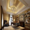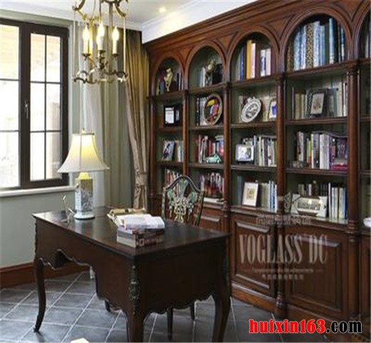 设计师严格遵循此种风格的设计理念,以科学严谨的创作态度,利用合理的空间布局,清晰的空间层次划分,家具配饰的点缀作用,把欧式书房所具有浓重文化氛围,以及优雅大气的外在表现,都通过细节点点滴滴的表达出来,达到了良好的效果。