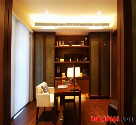 整体设计优雅别致、流畅自然。符合欧式系列家装的一惯特点。设计师在实际创作之前和业主进行了良好的沟通,将业主的意愿很好的融入到了具体的装修设计当中,并且做到了很好的协调处理,整体表现和谐自然,协调统一。表现出了欧式书房的特质和内在感。