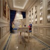 整体设计优雅别致、流畅自然。符合欧式系列家装的一惯特点。设计师在实际创作之前和业主进行了良好的沟通,将业主的意愿很好的融入到了具体的装修设计当中,并且做到了很好的协调处理,整体表现和谐自然,协调统一。表现出了欧式书房的特质和内在感。
