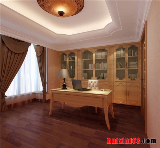 整体设计优雅别致、流畅自然。符合欧式系列家装的一惯特点。设计师在实际创作之前和业主进行了良好的沟通,将业主的意愿很好的融入到了具体的装修设计当中,并且做到了很好的协调处理,整体表现和谐自然,协调统一。表现出了欧式书房的特质和内在感。