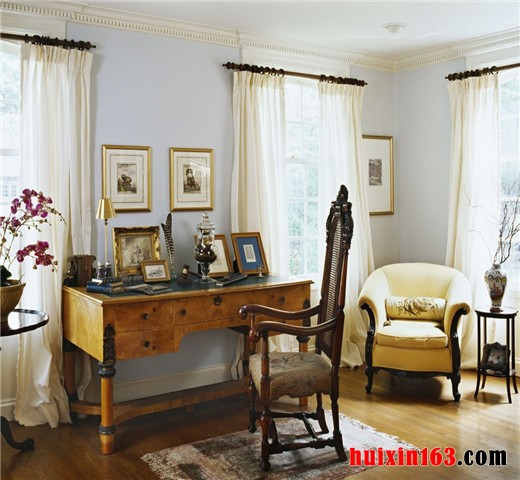 线条勾勒较其它常见设计风格来说,较为明显自然,能够体现欧式系列家装的大气从容之感。书房的功能性在得到体现的同时,十分注重舒适性的考虑。对书房用具的配置十分仔细。书架的阵设、书桌椅的搭配,都以欧式风格设计理念为依托,烘托出整个职能空间的的优雅气质。