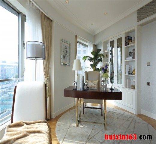 线条勾勒较其它常见设计风格来说,较为明显自然,能够体现欧式系列家装的大气从容之感。书房的功能性在得到体现的同时,十分注重舒适性的考虑。对书房用具的配置十分仔细。书架的阵设、书桌椅的搭配,都以欧式风格设计理念为依托,烘托出整个职能空间的的优雅气质。