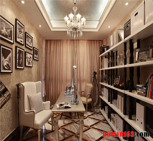 线条勾勒较其它常见设计风格来说,较为明显自然,能够体现欧式系列家装的大气从容之感。书房的功能性在得到体现的同时,十分注重舒适性的考虑。对书房用具的配置十分仔细。书架的阵设、书桌椅的搭配,都以欧式风格设计理念为依托,烘托出整个职能空间的的优雅气质。