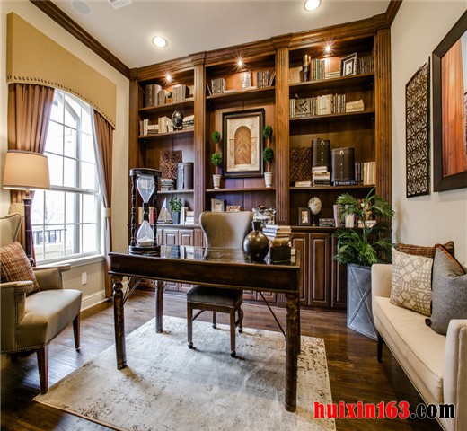 线条勾勒较其它常见设计风格来说,较为明显自然,能够体现欧式系列家装的大气从容之感。书房的功能性在得到体现的同时,十分注重舒适性的考虑。对书房用具的配置十分仔细。书架的阵设、书桌椅的搭配,都以欧式风格设计理念为依托,烘托出整个职能空间的的优雅气质。