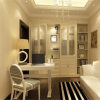 色彩运用豪迈奔放,符合欧式系列家装的一惯特征。具体到书房这一职能空间的处理上,设计师充分依托空间和户型的优势,利用线条的勾勒来进行配合处理。使整体达到自然和谐的状态,同时,为了体现书房的功能性特点,把书房家具配置的点缀作用放在了主要位置进行处理。达到了良好的效果。