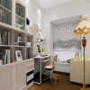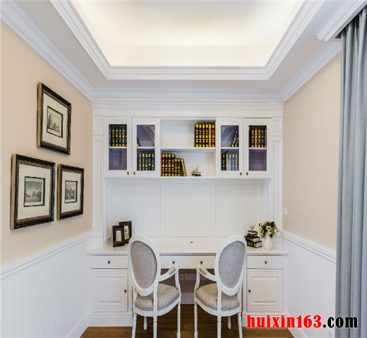 色彩运用豪迈奔放,符合欧式系列家装的一惯特征。具体到书房这一职能空间的处理上,设计师充分依托空间和户型的优势,利用线条的勾勒来进行配合处理。使整体达到自然和谐的状态,同时,为了体现书房的功能性特点,把书房家具配置的点缀作用放在了主要位置进行处理。达到了良好的效果。