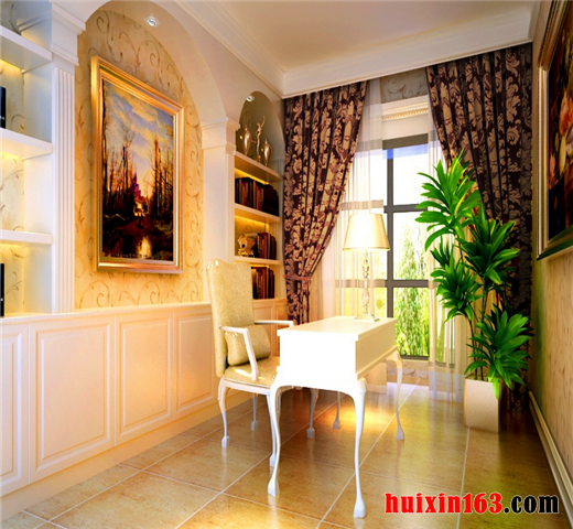 色彩运用豪迈奔放,符合欧式系列家装的一惯特征。具体到书房这一职能空间的处理上,设计师充分依托空间和户型的优势,利用线条的勾勒来进行配合处理。使整体达到自然和谐的状态,同时,为了体现书房的功能性特点,把书房家具配置的点缀作用放在了主要位置进行处理。达到了良好的效果。