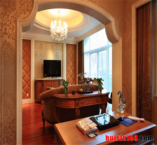 色彩运用豪迈奔放,符合欧式系列家装的一惯特征。具体到书房这一职能空间的处理上,设计师充分依托空间和户型的优势,利用线条的勾勒来进行配合处理。使整体达到自然和谐的状态,同时,为了体现书房的功能性特点,把书房家具配置的点缀作用放在了主要位置进行处理。达到了良好的效果。