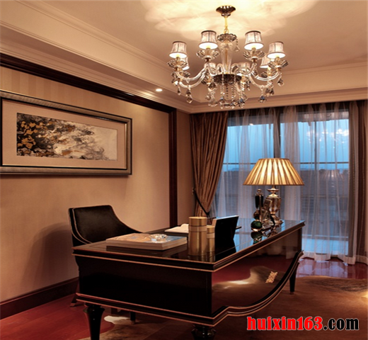 色彩运用豪迈奔放,符合欧式系列家装的一惯特征。具体到书房这一职能空间的处理上,设计师充分依托空间和户型的优势,利用线条的勾勒来进行配合处理。使整体达到自然和谐的状态,同时,为了体现书房的功能性特点,把书房家具配置的点缀作用放在了主要位置进行处理。达到了良好的效果。