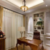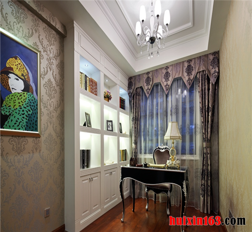色彩运用豪迈奔放,符合欧式系列家装的一惯特征。具体到书房这一职能空间的处理上,设计师充分依托空间和户型的优势,利用线条的勾勒来进行配合处理。使整体达到自然和谐的状态,同时,为了体现书房的功能性特点,把书房家具配置的点缀作用放在了主要位置进行处理。达到了良好的效果。