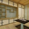 典型的日式风格书房设计。空间布局和日本的“和室”十分吻合。桌椅陈设,也都以日式造型和款式来进行尽情妆点。总体明朗欢快,清新自然。设计师紧紧抓住了日式传统系列家装的特点,以点带面的反映日式书房装修设计的美感,起到了良好的效果。