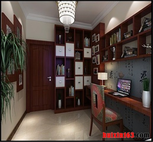 典型的日式风格书房设计。空间布局和日本的“和室”十分吻合。桌椅陈设,也都以日式造型和款式来进行尽情妆点。总体明朗欢快,清新自然。设计师紧紧抓住了日式传统系列家装的特点,以点带面的反映日式书房装修设计的美感,起到了良好的效果。