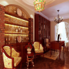 地面处理方面厚重大方,色彩处理优雅从容,材质选妥当合理,配合着欧式墙纸的尽情发挥,以顶层级分明的顶棚处理,三者协调处理,相互配合,相映成辉的表现着欧式风格书房的家装效果。整体和谐自然、协调统一。业主表示非常喜欢这样的设计效果。