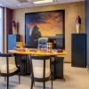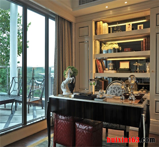 地面处理方面厚重大方,色彩处理优雅从容,材质选妥当合理,配合着欧式墙纸的尽情发挥,以顶层级分明的顶棚处理,三者协调处理,相互配合,相映成辉的表现着欧式风格书房的家装效果。整体和谐自然、协调统一。业主表示非常喜欢这样的设计效果。