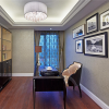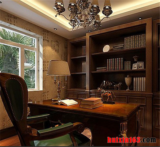 地面处理方面厚重大方,色彩处理优雅从容,材质选妥当合理,配合着欧式墙纸的尽情发挥,以顶层级分明的顶棚处理,三者协调处理,相互配合,相映成辉的表现着欧式风格书房的家装效果。整体和谐自然、协调统一。业主表示非常喜欢这样的设计效果。