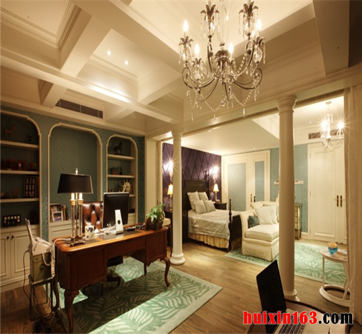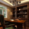 地面处理方面厚重大方,色彩处理优雅从容,材质选妥当合理,配合着欧式墙纸的尽情发挥,以顶层级分明的顶棚处理,三者协调处理,相互配合,相映成辉的表现着欧式风格书房的家装效果。整体和谐自然、协调统一。业主表示非常喜欢这样的设计效果。