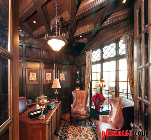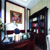 地面处理方面厚重大方,色彩处理优雅从容,材质选妥当合理,配合着欧式墙纸的尽情发挥,以顶层级分明的顶棚处理,三者协调处理,相互配合,相映成辉的表现着欧式风格书房的家装效果。整体和谐自然、协调统一。业主表示非常喜欢这样的设计效果。