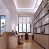 色彩运用方面以轻描淡写的态度进行全局性铺设,没有大面积色块的对比,也没有眼花缭乱的色彩进行刻画,以极尽淡雅的基调从局部向整个空间蔓延开来,展示了书房的低调和内涵。幽静深远的意境通色调的整体调控得以完美展现,彰显出了书房职能空间的优雅之美。